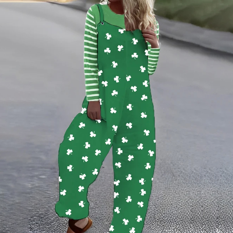 Women's St. Patrick's Day Lucky Shamrocks Printed Loose Fit Jumpsuit