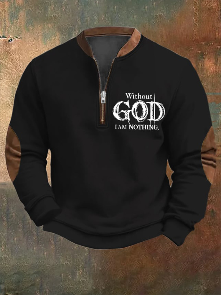 Men's Vintage Faith Without God I Am Nothing Printed Zip Collar Sweatshirt