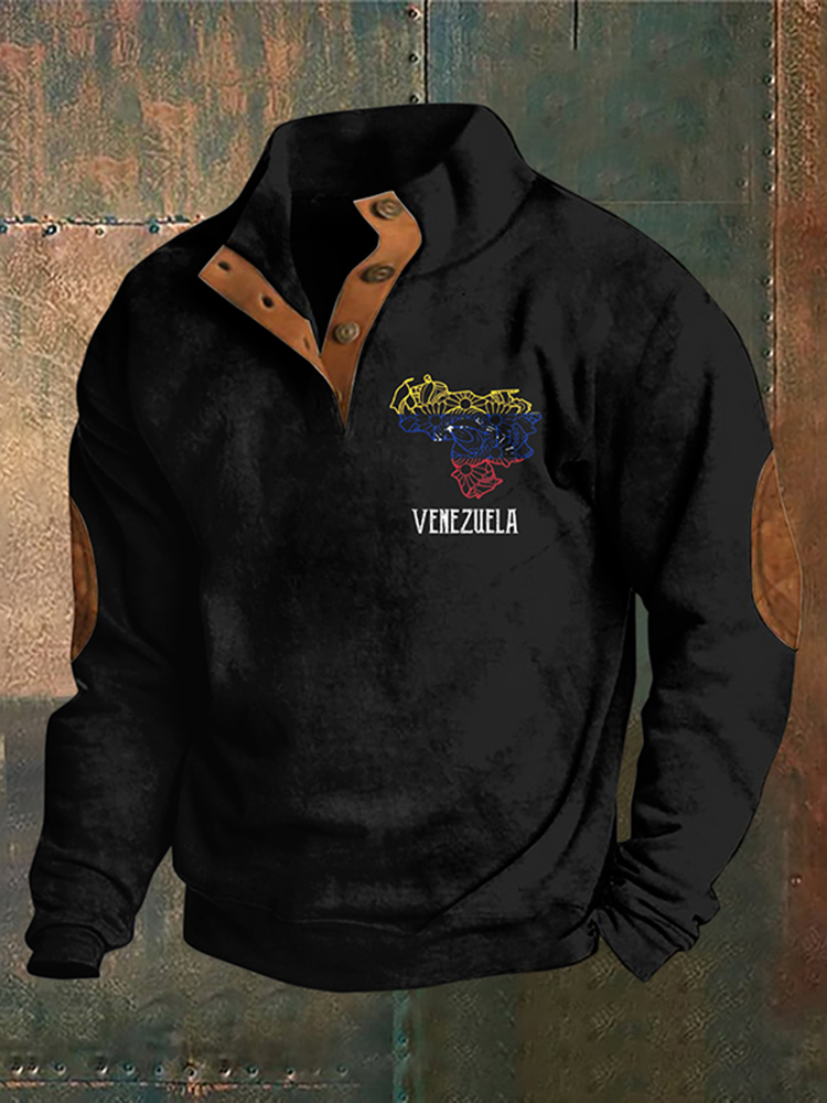 Men's Venezuela Map Print Stand Collar Button Sweatshirt