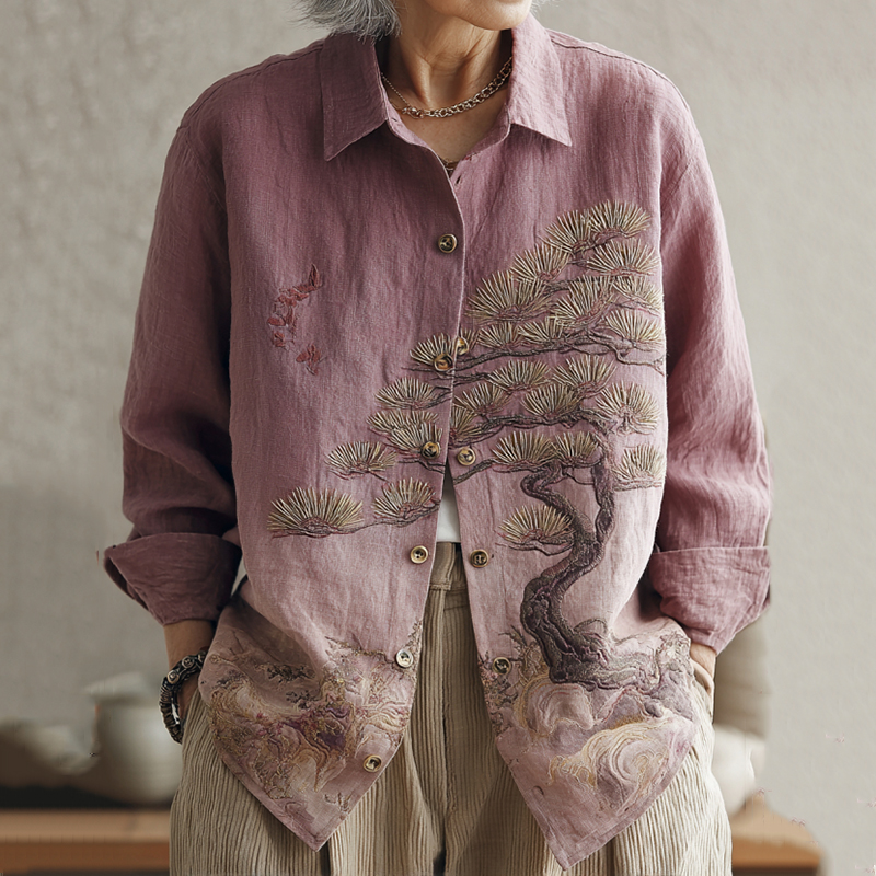 Women's Japanese Floral Art Button Down Comfy Shirt