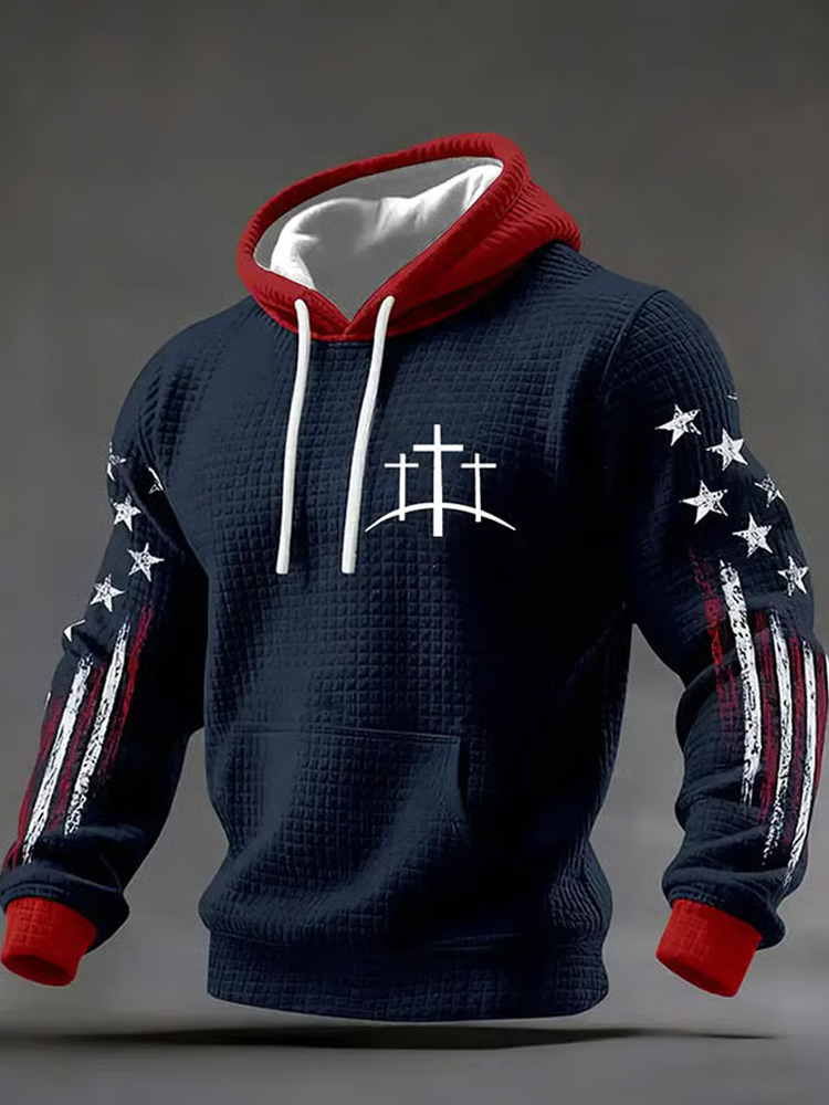 Men's Casual Cross Faith Printed Hooded Sweatshirt