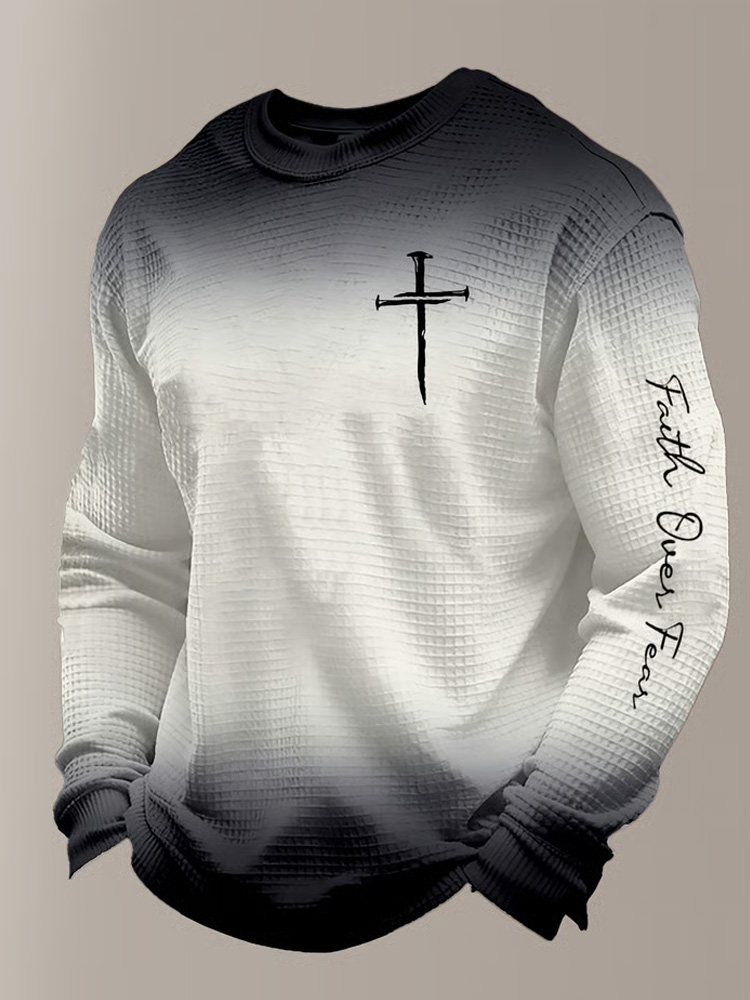 Men's Retro Faith Cross Printed Crew Neck Sweatshirt