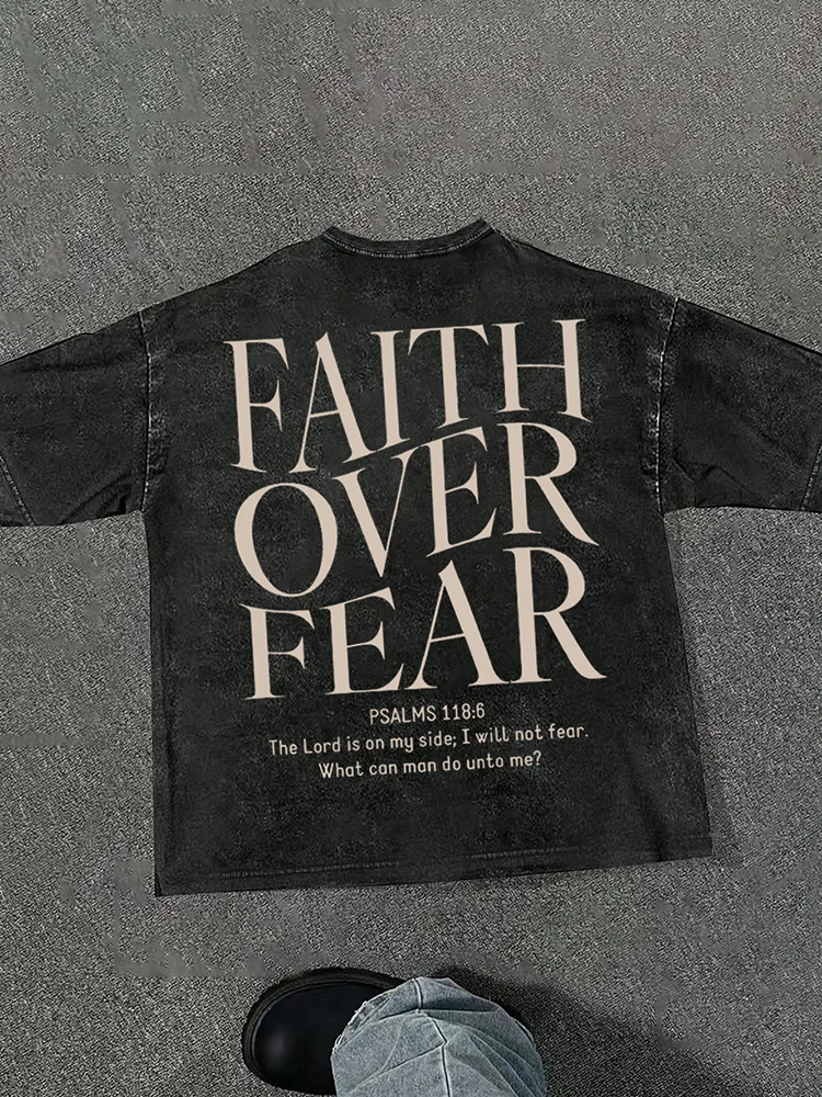 Vintage Faith Over Fear Graphic Acid Washed T-shirt