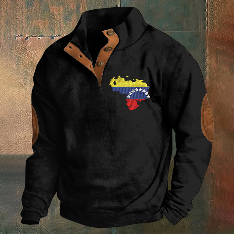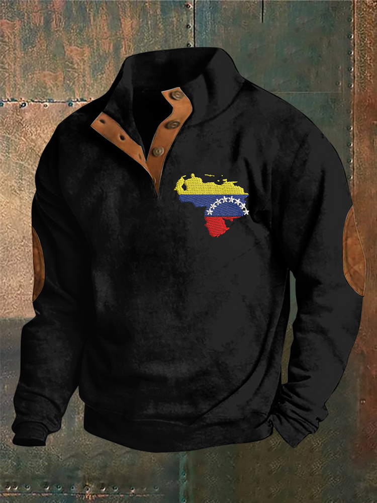 Men's Venezuela Map Print Stand Collar Button Sweatshirt