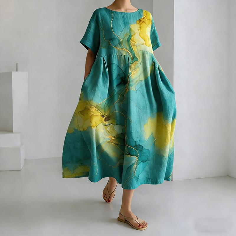 Women's Japanese Alcohol Ink Painting Pattern Comfortable Dress