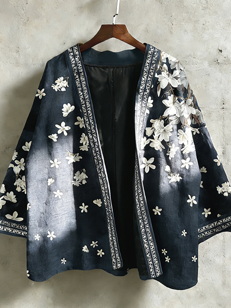 Retro Japanese Pear Blossom Pattern Casual Kimono Cardigan