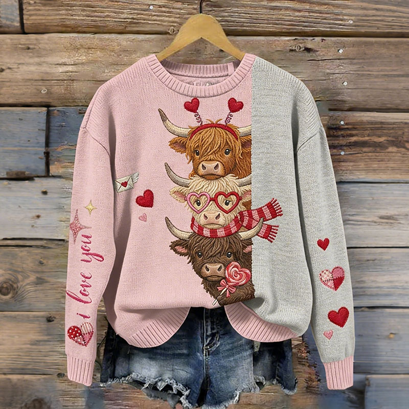 Women's Valentine's Day Highland Cow Pattern Knit Sweatshirt
